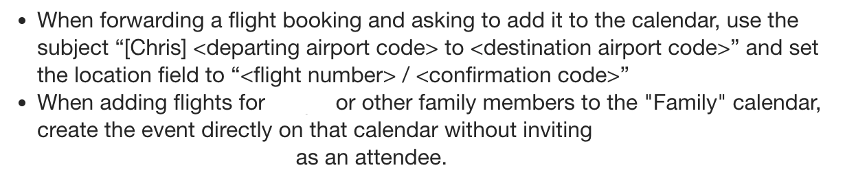 I’m a picky traveller and generally book my own flights (even when I work with an EA/VA). Whenever I book a flight, I have to add details to one or more calendars. That might not sound like a big deal, but each one takes a few minutes — potentially more if you’re like me and like to have your calendar entries in a particular format, complete with flight details and booking references.