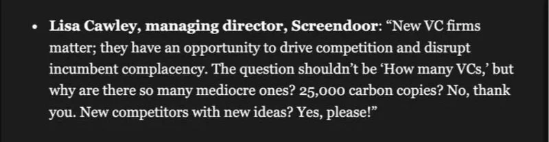 “Triple, triple, double, double is definitely dead. I tell our investors: don’t bring that to me <laugh>…Going from $1M to $3M to $9M is not interesting…you gotta go, like, $1M to $15 - $20M to $100M.”