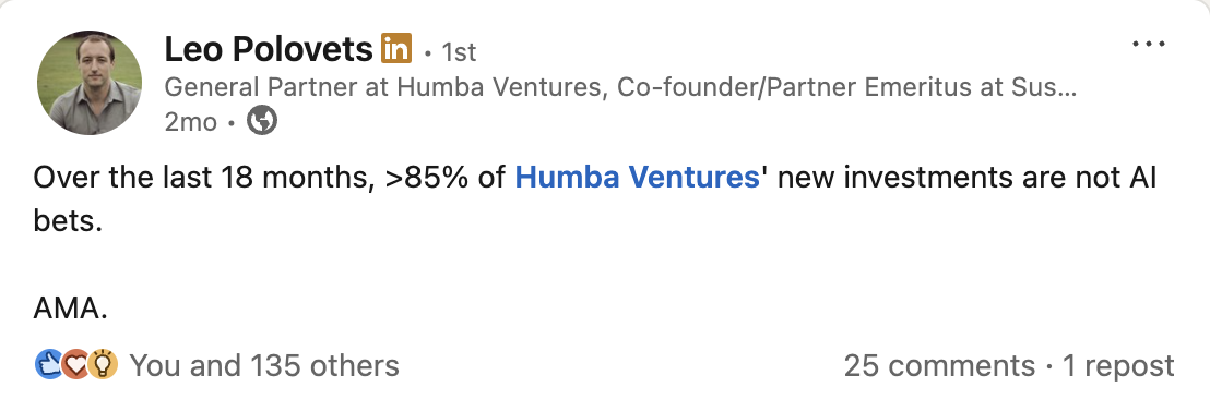 Bottom line: if institutional and corporate LPs outside of the U.S. continue to sit on their hands, their countries risk missing out on what looks to be the biggest and most consequential technological (and economic) shift in our lifetimes.